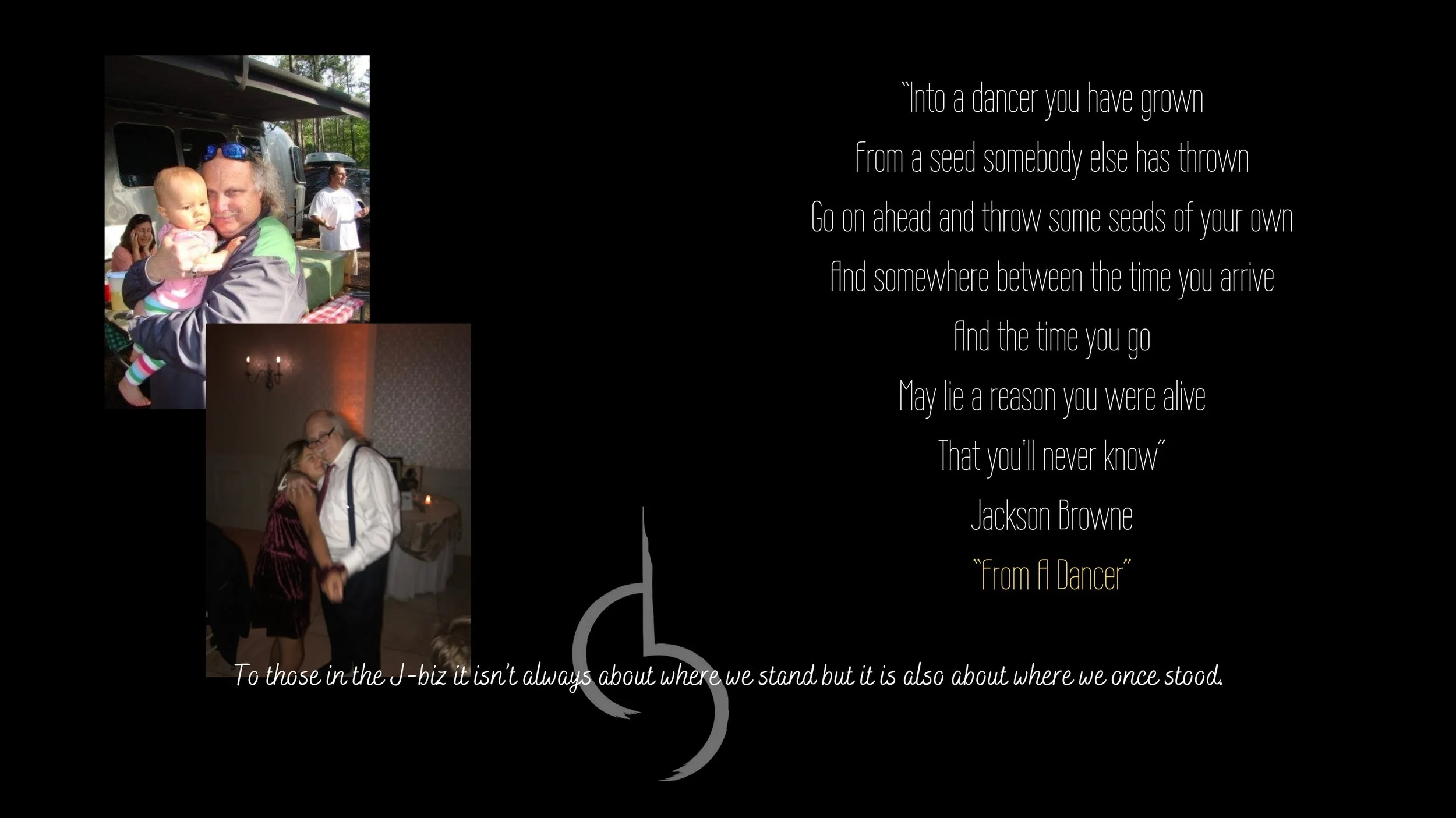 And so, I begin with the two photos that always brings a tear to my eyes, I danced with “SoSo Kennedy” in a campground when she was a tiny baby…