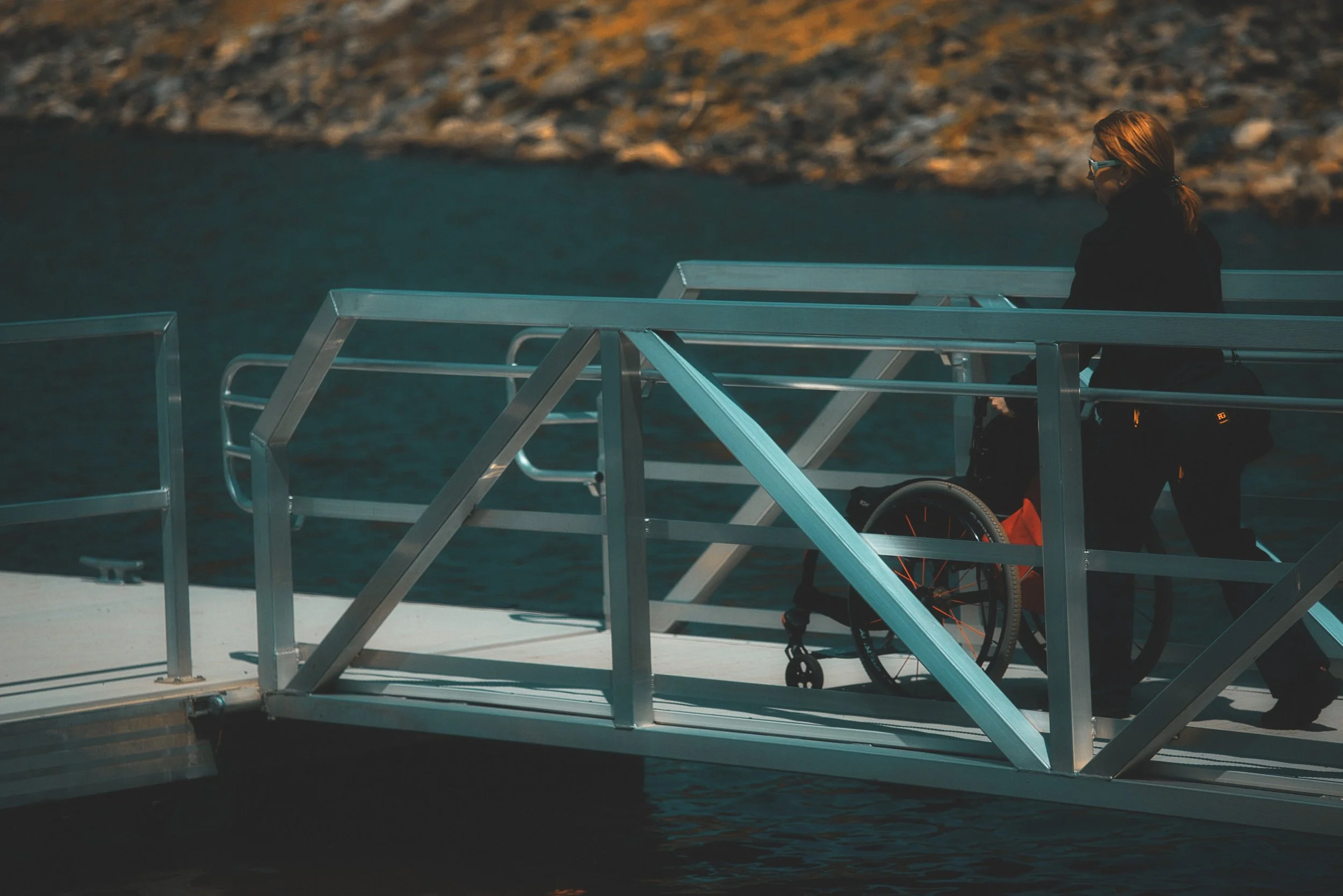 A few boats turned left and headed to the “new” dock where some wheelchairs were parked…